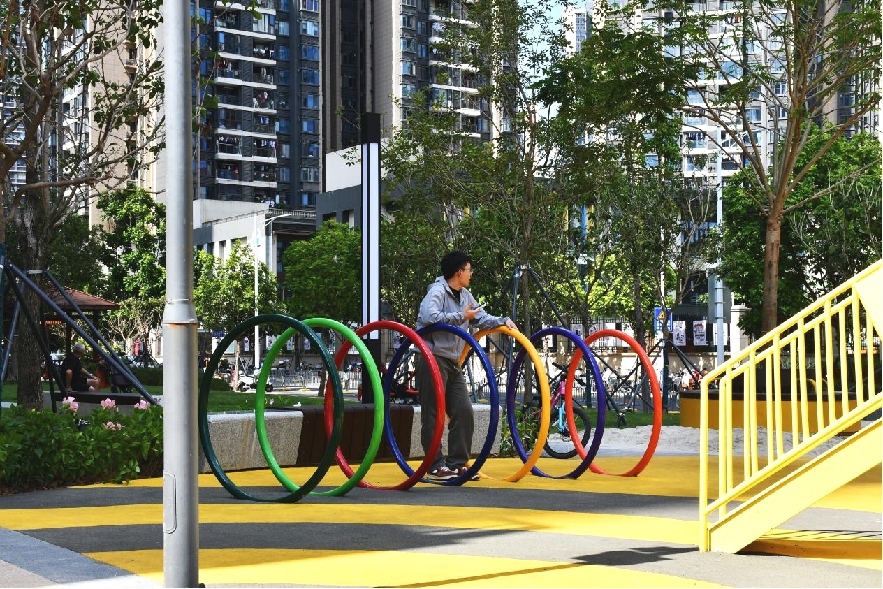 深圳新闻网2025年10月11日讯(记者 程熙)近日,坪山区恒大成小区二期东门门前的“联馨绿廊”口袋公园开园,崭新的休闲设施、葱郁的绿植吸引众多居民前来打卡,大家或带着孩子在儿童游乐场嬉戏,或约上邻里在廊亭闲聊,尽情享受这份“推窗见绿、步行入园”的惬意。