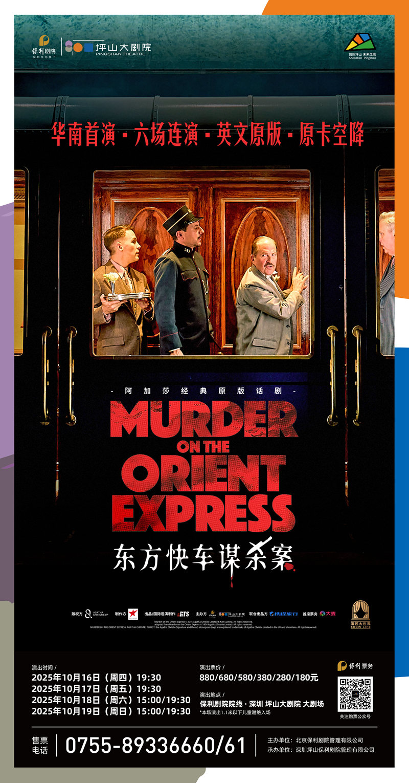 2025年10月16日至19日,保利剧院院线·深圳坪山大剧院,阿加莎经典原版话剧《东方快车谋杀案》华南首站六场连演,在金秋时节感受原汁原味的悬疑张力,沉浸式感受推理盛宴!