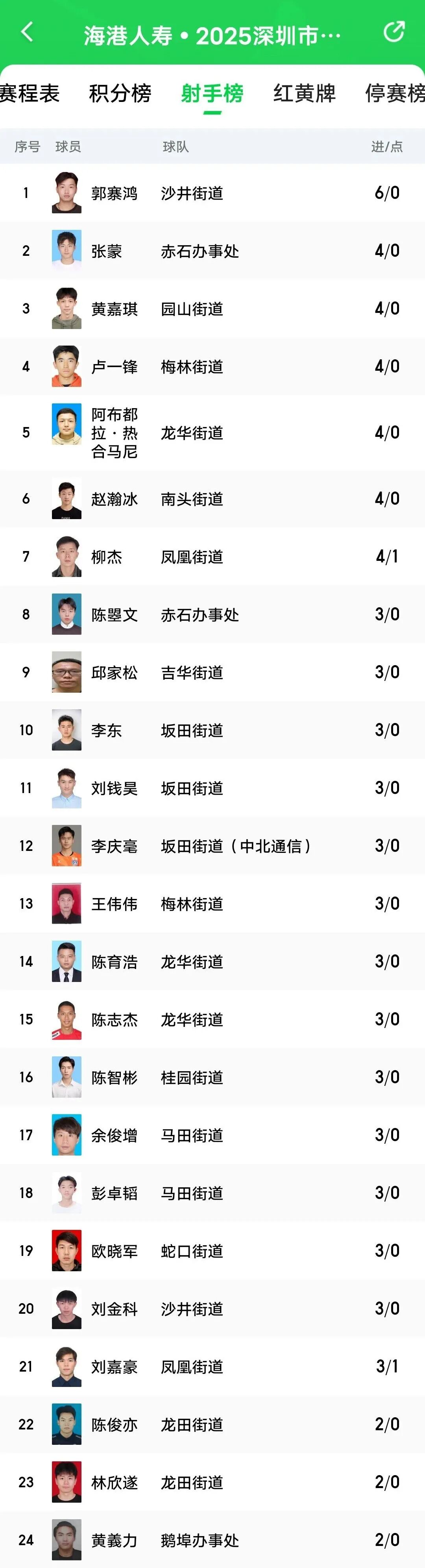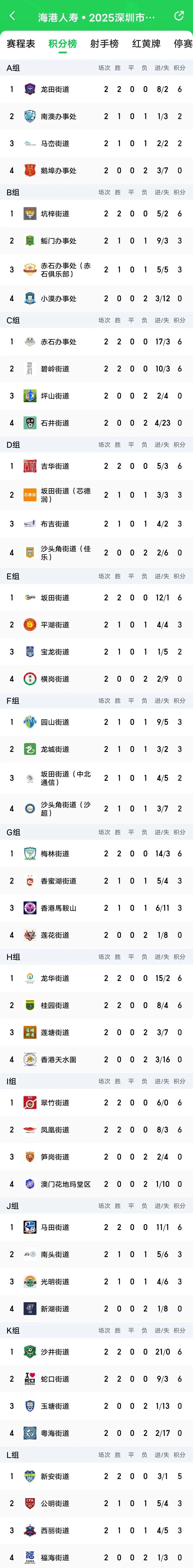 南山赛区,沙井街道表现出强大竞争力,以两轮比赛进21球失0球的亮眼数据坐镇小组头名,蛇口街道虽同积6分,因净胜球数据暂列第二。另外两个小组则展现出胶着态势,南头街道与光明街道、公明街道与西丽街道皆同积3分,第三轮的晋级决战值得期待!