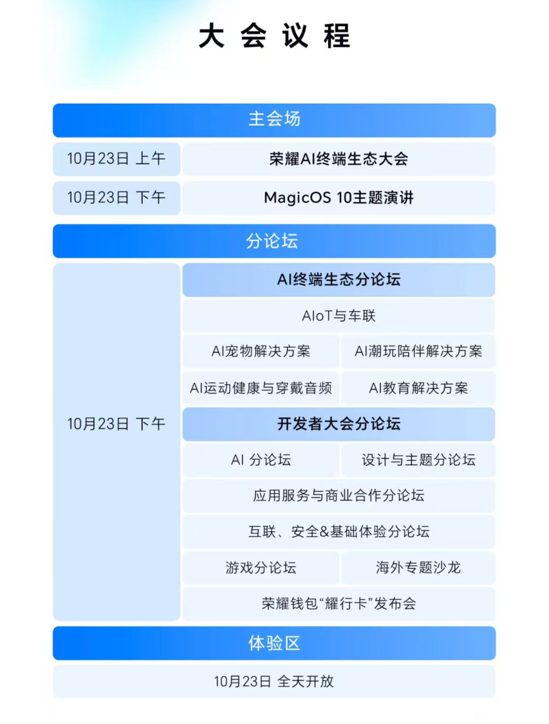 2025年荣耀全球开发者大会暨AI终端生态大会将于10月23日于深圳坪山举办,作为政府与企业联合举办的首次AI终端生态大会,本次大会以“智联无界·生态共创”为主题,通过1场主论坛、8场分论坛以及全天开放体验区,聚焦通过技术品牌、渠道、生态赋能,助力打造千亿级AI终端生态产业集群,让AI驱动物理世界实现自动化。