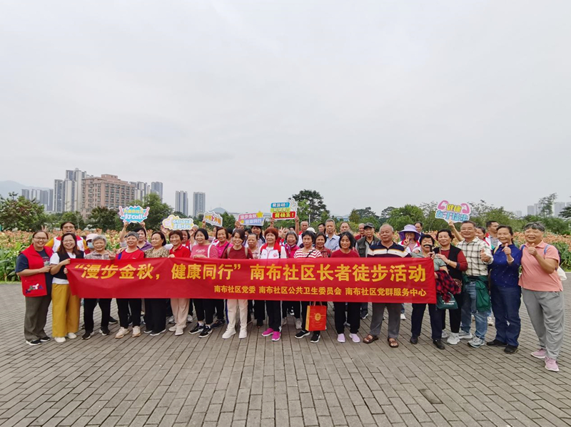 当天上午,由南布社区党委与社区老年人协会联合组织的“漫步金秋·健康同行”长者徒步活动同步开展,吸引60余位社区长者热情参与。活动设置精心设计的徒步路线,沿途设立“健康知识问答”和“趣味合影”两个主题打卡点。在健康问答点,长者们踊跃参与日常健康知识互动,在趣味中学习运动与饮食知识;在合影点,大家创意摆拍,留下了一张张灿烂笑脸。徒步结束后,社区还组织了健康知识讲座,进一步深化长者对科学养生知识的理解。通过“徒步+打卡+讲座”的创新形式,活动将运动健身、趣味互动与健康科普有机结合,受到长者们的一致好评。