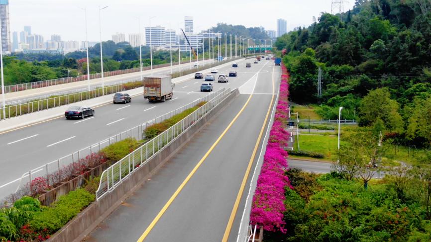为实现确保关键节点、重要时期花卉的最佳观赏效果,坪山区城管和综合执法局对簕杜鹃、大红花、粉纸扇等重点花木实施了“复壮促花”技术。通过科学的水肥管理和修剪调控,有效延长了花期,提升了开花质量。这种“低成本、高效益”的改造思路,不仅节约了财政资源,更体现了尊重自然、顺应季节的生态智慧,实现了“舒朗通透、花红叶绿”的景观目标,让城市“血脉”在畅通的同时,也披上了靓丽的新装。