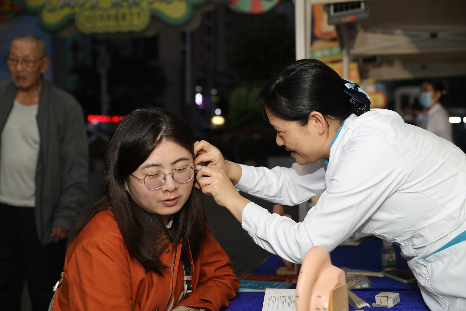 活动期间,医院治未病科、内科、妇科、肺病科、皮肤科、儿科和小儿骨科等科室专家穿上白大褂做起了中医摆摊的“摊主”——为现场参加活动的市民们打造“一站式”中医健康服务。治未病科专家通过“望闻问切”四诊合参,为市民量身定制膏方调养方案,传递“未病先防”理念;儿科团队以小儿推拿、穴位贴敷等绿色疗法,助力儿童增强体质、茁壮成长;小儿骨科骨龄检测服务备受家长关注,专家现场解读生长发育曲线,提供科学饮食与运动建议。带母亲来体验的市民王小姐兴奋道,“中医专家摆摊接诊把中医带到了家门口,造福更多市民,让大家走进中医了解中医,很有意义”。