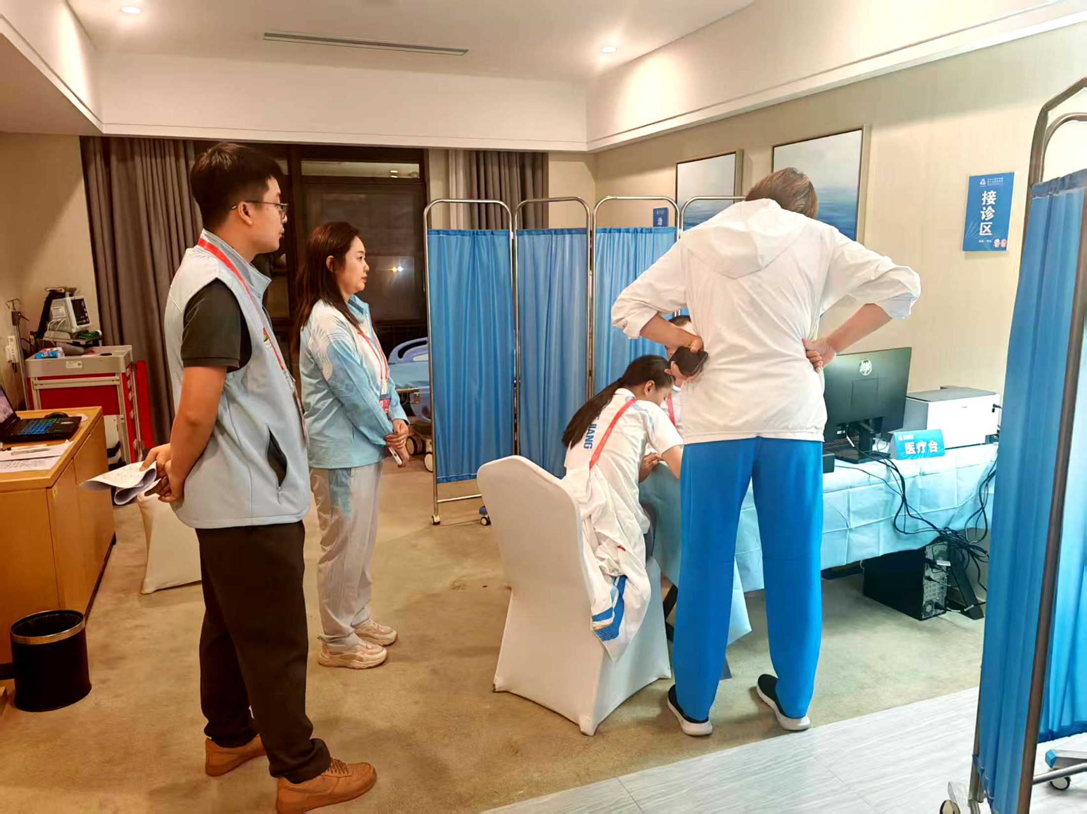 健康守护同样时刻在线。医护人员24小时驻点值守,实现应急响应“零时差”。临近比赛前一晚,两名运动员突发身体不适,专班闻令而动,第一时间协调送医,开通绿色通道,并安排专人实时跟进,直至其康复返回。一次快速响应,映照出坚实的医疗保障体系与温暖的人文关怀。