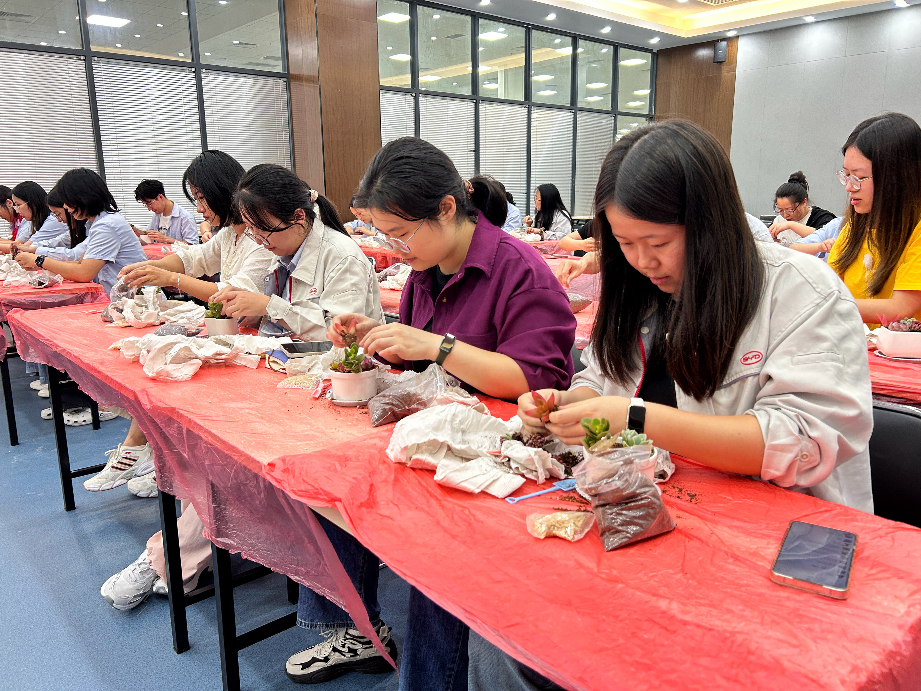 大家一边动手操作,一边交流种植心得,现场氛围轻松愉悦,欢声笑语不断。指尖触碰土壤的温润触感,绿植带来的生机与活力,让职工卸下了工作的疲惫,沉浸在自然疗愈的美好之中。活动尾声,职工手捧着亲手栽种的绿植,脸上洋溢着满足的笑容。大家纷纷表示这样的活动既实用又暖心,不仅学会了基础园艺技能,更在忙碌的工作之余获得了放松机会,有效舒缓了身心压力。