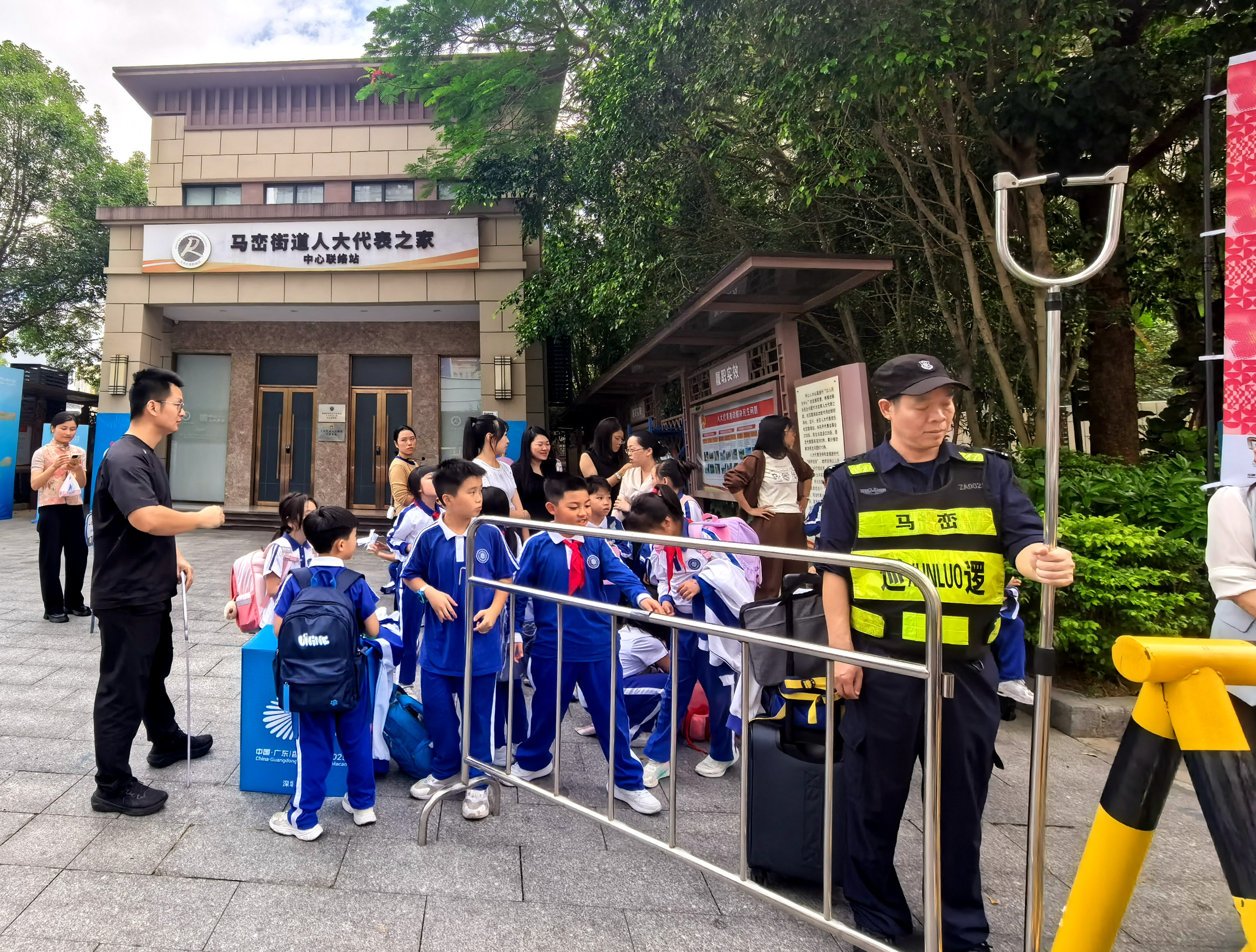辖区居民的本来生活秩序同样需要正常保障。在酒店实施安保围合管理的同时,如何保障周边的弘金地国际学校900余名师生顺畅通行和80名教职工的停车需求,成为一道现实课题。马峦街道酒店专班坚持“安全为要、便民为本”的原则,由专班安全保障组马峦派出所牵头,联合街道、学校、酒店多方会商,创新推出“分时段、分批、班主任带队”的学生接送方案,开辟外围专用通道,并实行校内停车场错峰共享。一系列举措既保障了赛事核心区的安全,又最大限度减少了对周边居民日常生活的干扰,实现了赛事保障与民生需求的和谐共融。