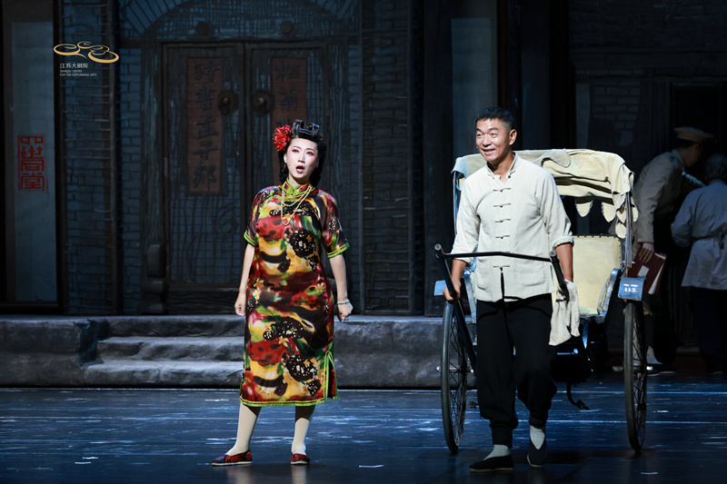 导演田沁鑫曾在采访中直言:“将85万字的原著压缩成两三万字的话剧剧本,一开始对我简直是不可能完成的任务。”为了在三个小时的有限时间里,将原著中乱世流离下的人情冷暖展现出来,导演田沁鑫选择采用“新现实主义”的表现手法,将多媒体技术和写实风格的舞台置景相结合,营造出独特的戏剧观影效果。小羊圈胡同中间是一个群体性社交的公共空间,通过演员们的推景和移步来完成环境场景的变化,让整个叠化的舞台行云流水一般丝滑。而那辆小洋车不但在场景转化中担当重任,还成为见证主要角色命运发展的叙述者和线索。