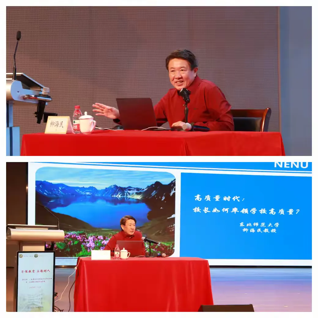 在主旨报告环节,东北师范大学原副校长柳海民教授作了《推进学校高质量发展的行动方式》的精彩报告。柳教授从国家站位、文化凝练、创新实践三维度,聚焦学校高质量发展,涵盖标准对标、文化构建及规划、学校德育等实践路径,为在场的名书记、名校长们提供了宝贵的理论指引与实践经验。