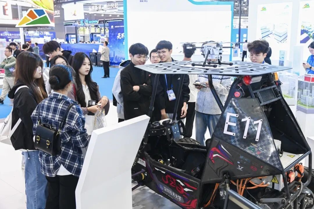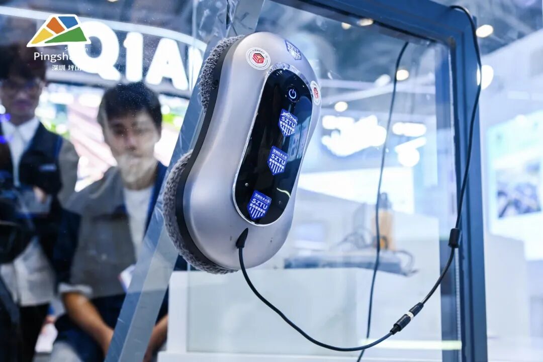 高交会上,坪山展厅将“产学研”力量推向“C位”,引人瞩目。除洞墟科技外,来自深技大的多个青年创新团队携原创成果惊艳亮相:征野科技的四驱电动巴哈赛车与车载无人机,在智能化与空地协同领域展现硬核实力;睿利信科技的GDAS数据采集系统,则以无线图传技术实现多通道采集与多终端监看,助力工业测控与实验室研究提质增效。现场还有跨窗框擦玻璃机器人,能精准破解高层户外擦窗“看不见、有危险”的痛点;三维自动光学检测设备的核心指标跻身国际第一梯队。
