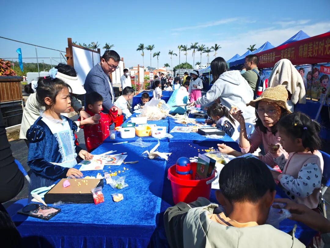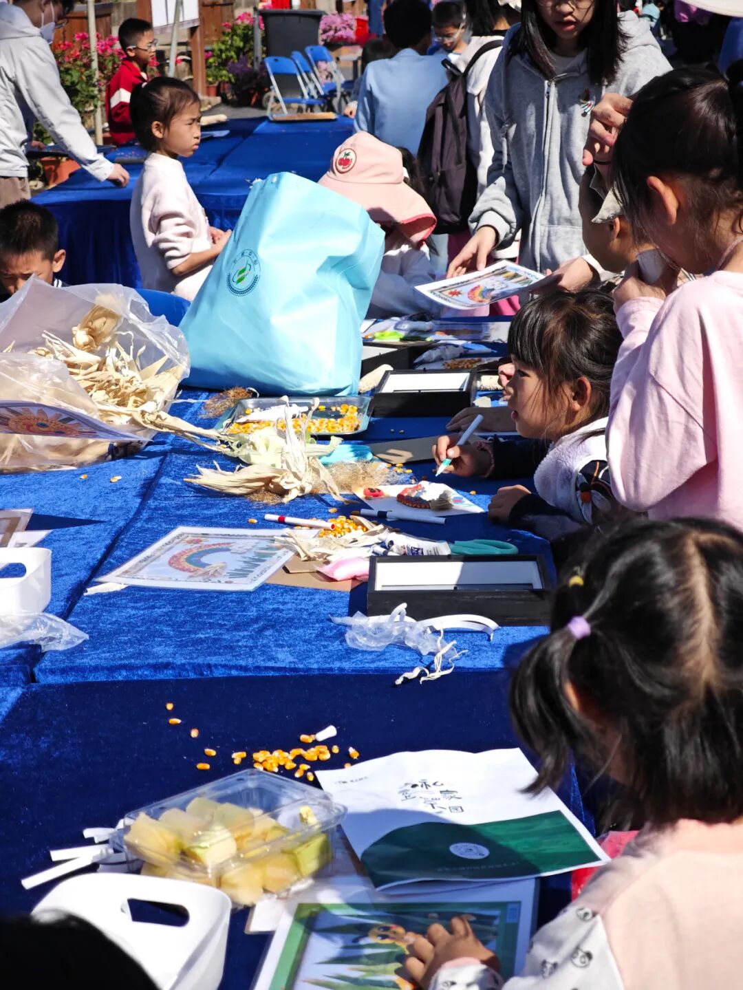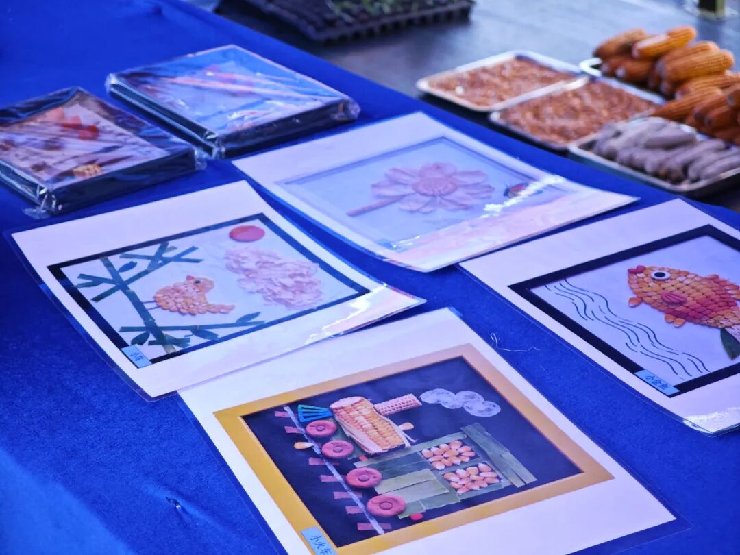 立足“百千万工程”促进农文旅融合的发展路径,活动通过创意农事体验推动农业从生产功能向休闲教育功能拓展。农耕文化体验区的开放式创作桌上,孩子们忙碌地剥下玉米粒,在现场工作人员的耐心引导下,用玉米谷粒、苞叶、玉米须等农副产物进行DIY拼贴创作。一位孩子的妈妈向现场工作人员说:“这是城市日常生活难以给予孩子的自然教育课。”