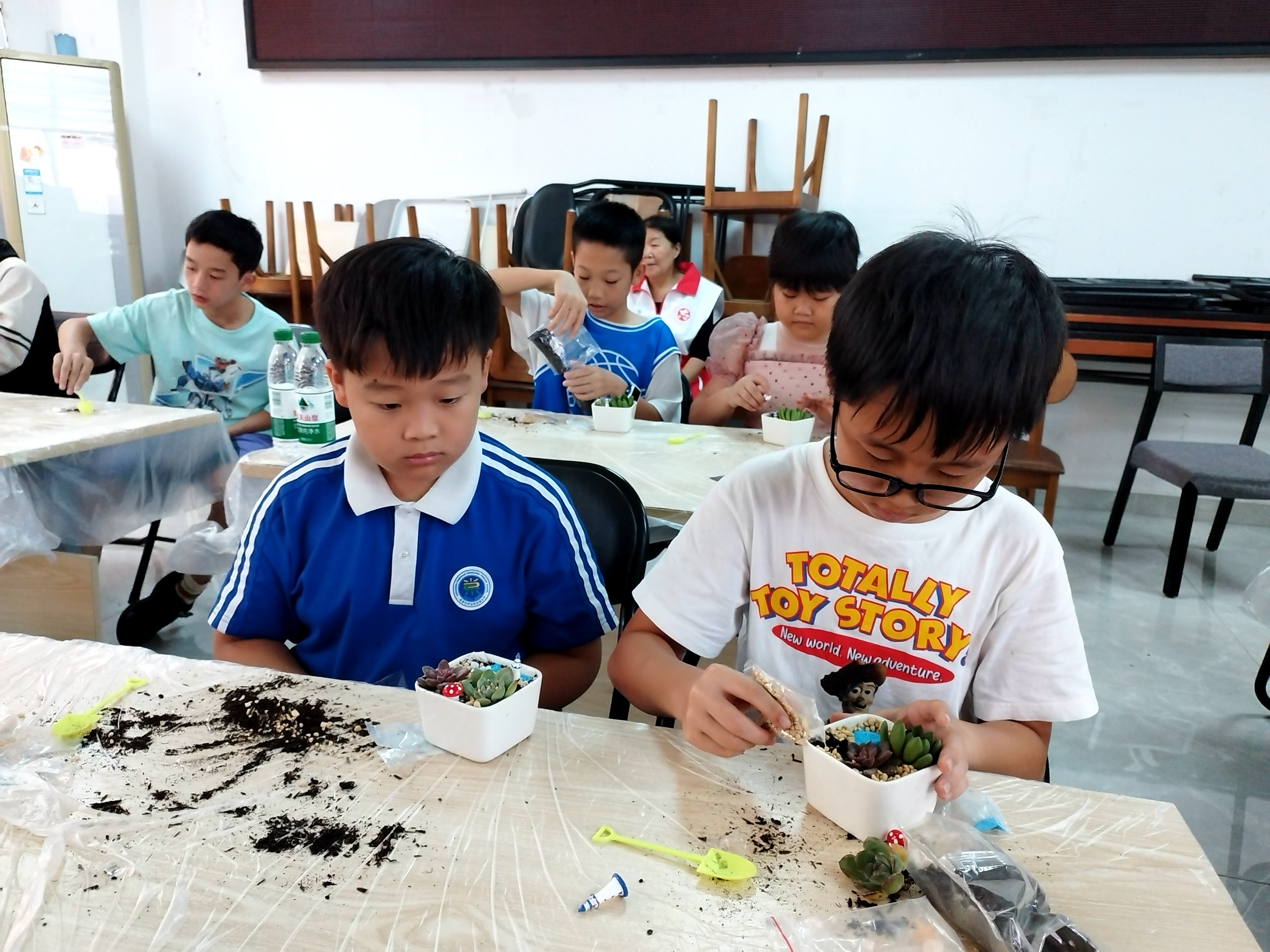 在社工的带领下,孩子首先通过“心情词汇大比拼”破冰游戏打开心扉,勇敢表达近期情绪状态。随后,社工引导大家进行正念呼吸练习,学习将注意力集中于当下,感知身体与呼吸的变化,初步体验身心放松的感觉。活动核心环节“情绪绿植”盆栽DIY将现场气氛推向高潮。孩子们跟随“正念种植四部曲”——感受土壤、闻嗅自然、观察形态、亲手种植,充分调动视觉、触觉与嗅觉,沉浸于与植物对话的宁静时刻。一位参与活动的孩子分享道:“摸着凉凉的土壤,看着绿绿的小多肉,心里一下子就安静了。”活动尾声,社工鼓励孩子们将亲手制作的“情绪绿植”带回家,把它当作“情绪小卫士”,在需要时与之对话,持续练习情绪调节。