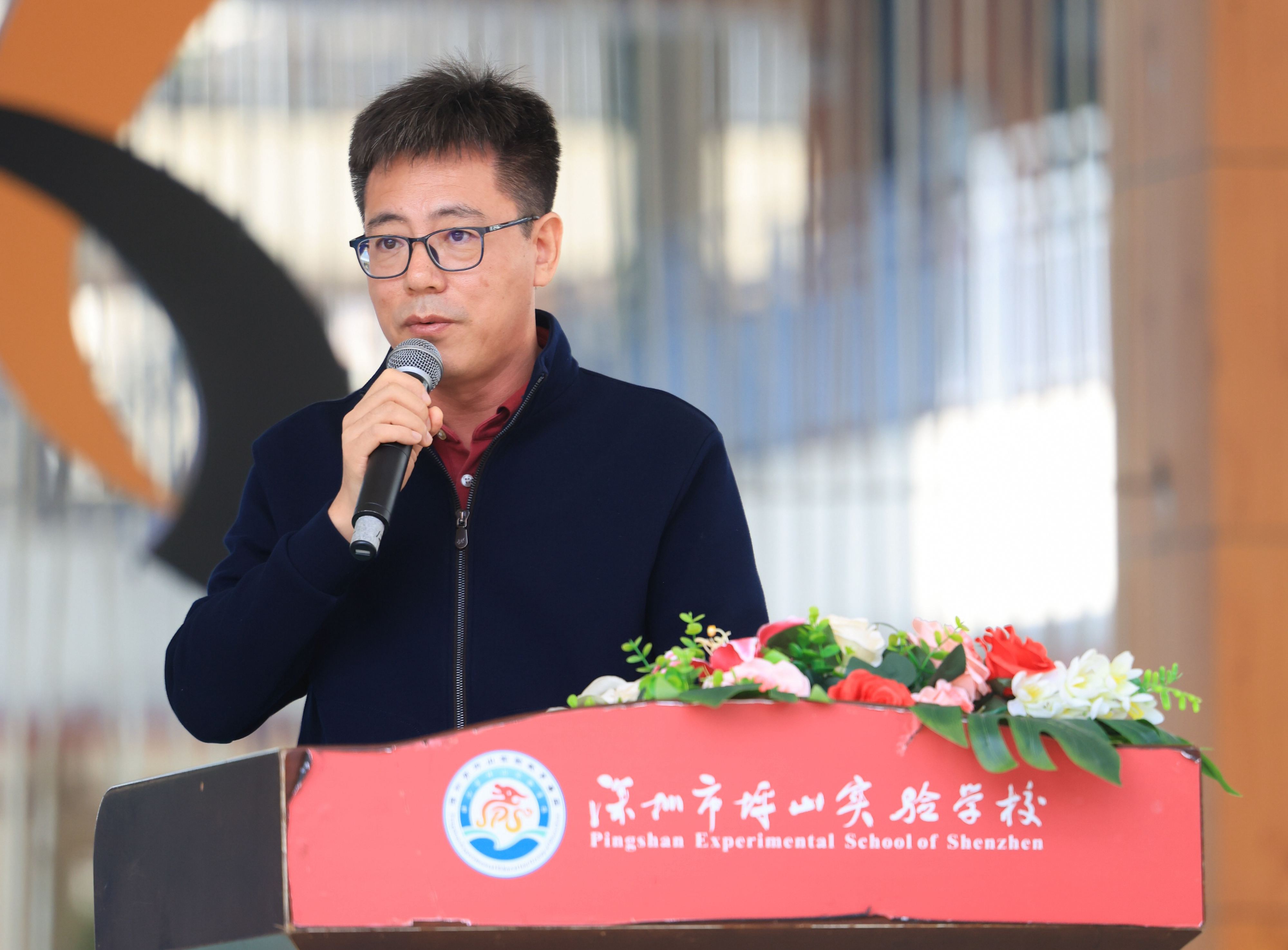 坪山实验学校副校长、初中部部长左远桥为大会致开幕词。他表示,赛场上成绩固然重要,但更重要的是勇毅拼搏、守望相助,这正是“九州同心”的时代气质,也是“绘坪山”的青春底色。他提出三点希望:一是全体运动员尊重规则、尊重对手、赛出水平、赛出风采;二是全体裁判员和工作人员要以专业与公正守护每一场比赛的尊严;三是全体师生文明观赛、享受运动,用掌声与微笑传递温暖与力量。
