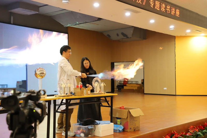 “静电为什么能点燃气体?”“实验失败了怎么办?”……互动环节中,同学们踊跃提问,王博士则以生动的比喻和通俗的语言一一解答。现场气氛热烈,科学的种子在问答之间悄然萌芽。