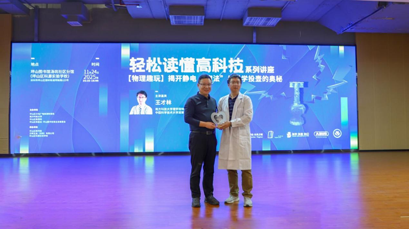 深圳新闻网2025年11月26日讯(记者 邱嘉熙)11月24日下午,作为第二十六届深圳读书月坪山分会场系列活动之一,2025“轻松读懂高科技”系列讲座第五场在坪山区科源实验学校(坪山图书馆汤坑社区分馆)精彩举行。南方科技大学理学院物理系高级实验师、中国科学技术大学凝聚态物理博士王才林,以《物理趣玩——揭开静电“魔法”与科学投壶的奥秘》为主题,带领现场师生与读者共同走进一场科学与趣味交融的探索之旅。