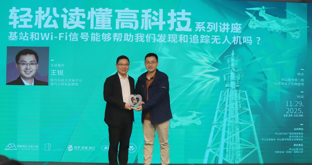深圳新闻网2025年12月1日讯(记者 邱嘉熙)11月29日,2025“轻松读懂高科技”系列讲座第六场在深圳市坪山区图书馆火热开启。南方科技大学电子与电气工程系副教授王锐以《基站和 Wi-Fi 信号能够帮助我们发现和追踪无人机吗?》为题,用通俗易懂的案例、生动形象的比喻与严谨的学术逻辑,结合自身科研经历,带市民解锁无线电波的奥秘,感受科技赋能生活的奇妙。
