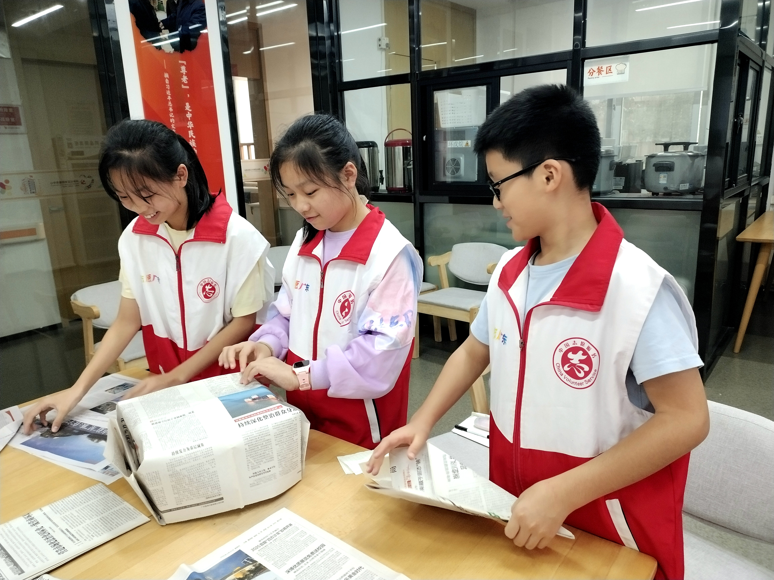 活动伊始,社工通过生动的科普视频,向孩子们展示了气候变化的成因及其对未来的深远影响,引导他们认识到应对气候危机的紧迫性。在低碳知识问答环节,孩子们积极互动,进一步加深了对气候变化科学知识的理解,初步建立起环境保护的责任感和参与公共事务的主体意识。随后,社工启发孩子们思考如何在日常生活中践行低碳生活方式。孩子们分组展开热烈讨论,并纷纷做出环保承诺,如“选择绿色出行”“节约用水用电”“购物自带环保袋”等,展现出对低碳生活的认同与行动意愿。在“变废为宝”手工环节,孩子们利用废旧报纸进行艺术创作,将环保理念融入动手实践。不仅锻炼了他们的创造力,更让绿色低碳意识真正内化于心、外化于行。