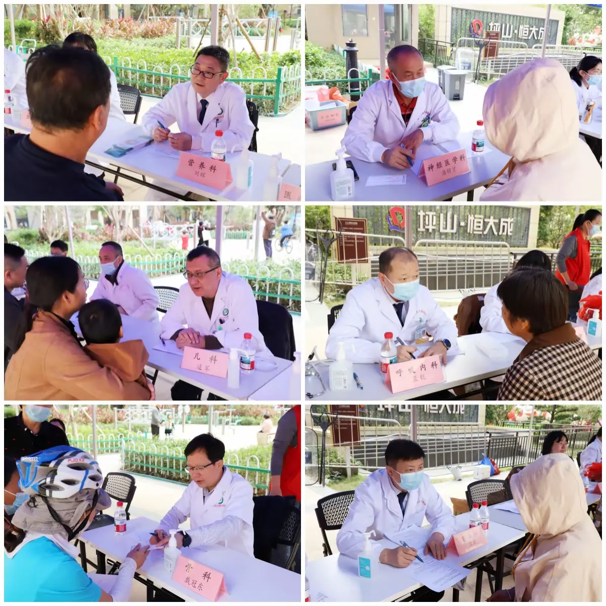 温暖的阳光洒在广场上,义诊现场热闹非凡。各科室专家面前都排起了队伍,居民们带着自己的健康问题有序咨询。