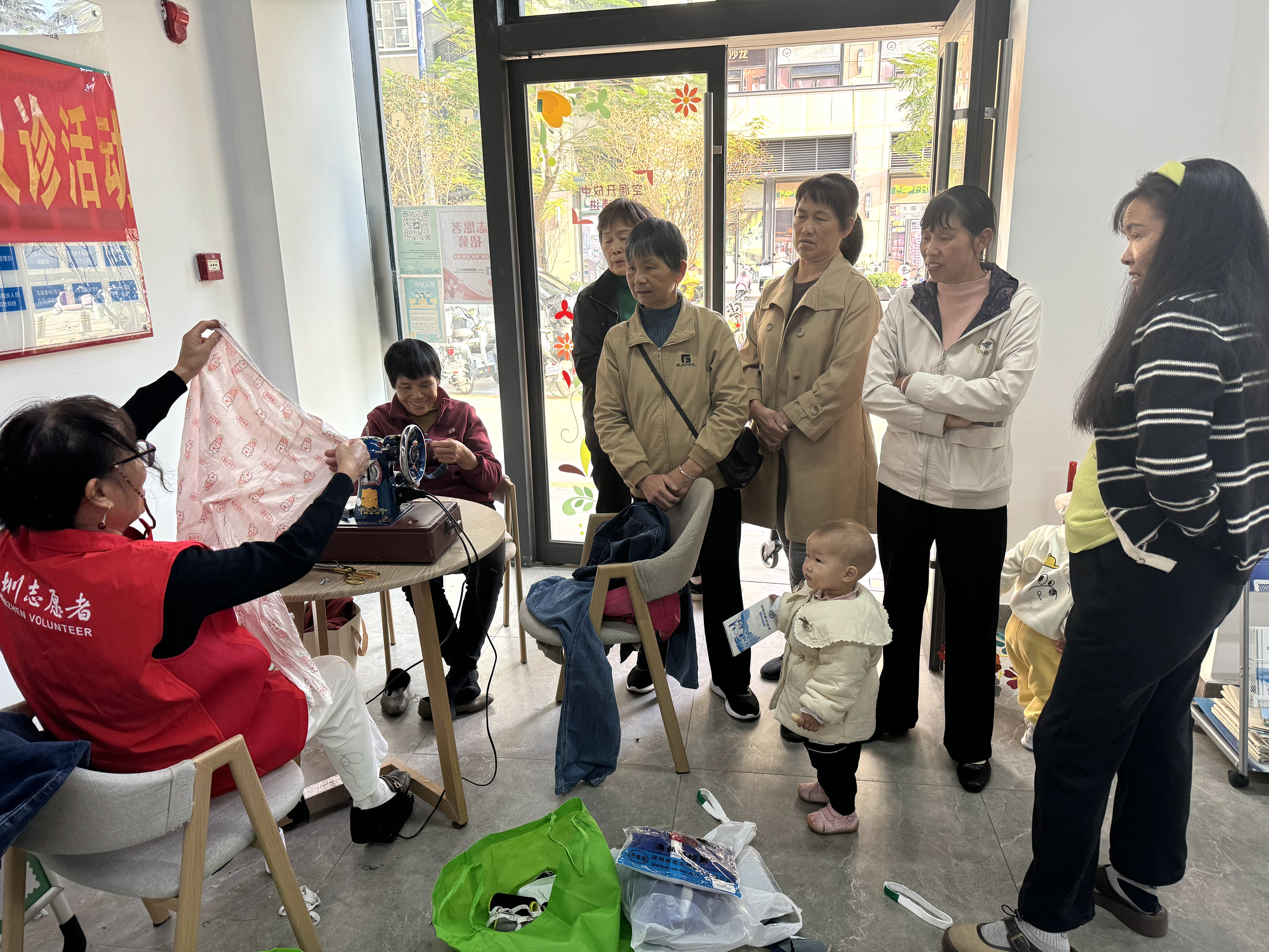 在硬件方面,社区通过小区党群服务微站与能人建立联动,依托党群服务微站为能人提供活动相关场地,提供缝纫机等便民设备,助力能人的活动可以更顺利开展。在活动支持的软性方面,马峦街道通过“社工+能人志愿者”模式,以社工力量为能人活动开展提供积极支持,成为能人的得力搭档与帮手,并将能人志愿者的需求进行积极反馈,推动支持解决。