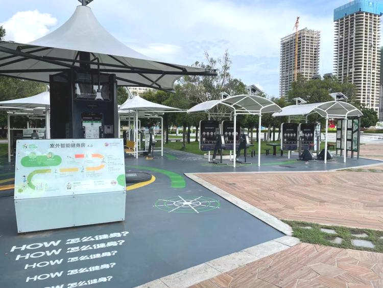 坪山中心公园拥有坪山首个室外智能健身房。公园的一角安置着智能五方位体测亭、自发电立体式健身车、智能竞赛车等设备,覆盖居民日常涉及的力量训练、有氧、体能辅助等各环节。