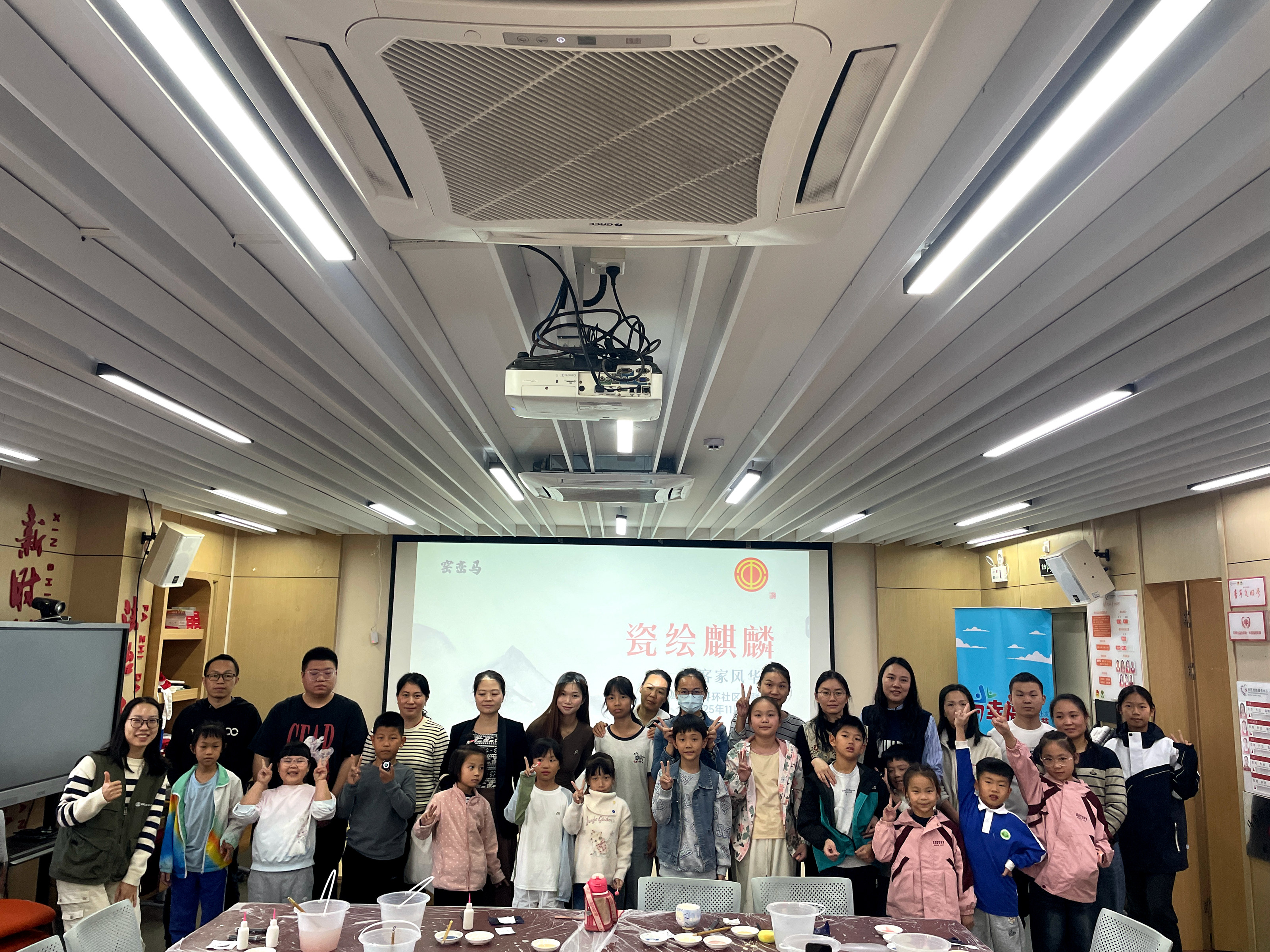 另一场活动是“瓷绘麒麟”亲子专场是另一派洋溢着欢笑与温情的场景。20组职工家庭齐聚一堂,共同绘制客家麒麟图腾。马峦窑文化讲师以故事讲述与实物展示相结合的方式,生动介绍了麒麟舞的起源与客家文化的内涵,激发了孩子们对本土文化的兴趣。绘制过程中,父母与孩子携手合作,勾勒轮廓、填涂色彩,釉下彩的画笔不仅是艺术的工具,也成为亲子沟通的桥梁。一件件充满童趣与创意的麒麟作品陆续完成,职工亲子在共同创作中加深了情感,也增强了对优秀传统文化的认同。