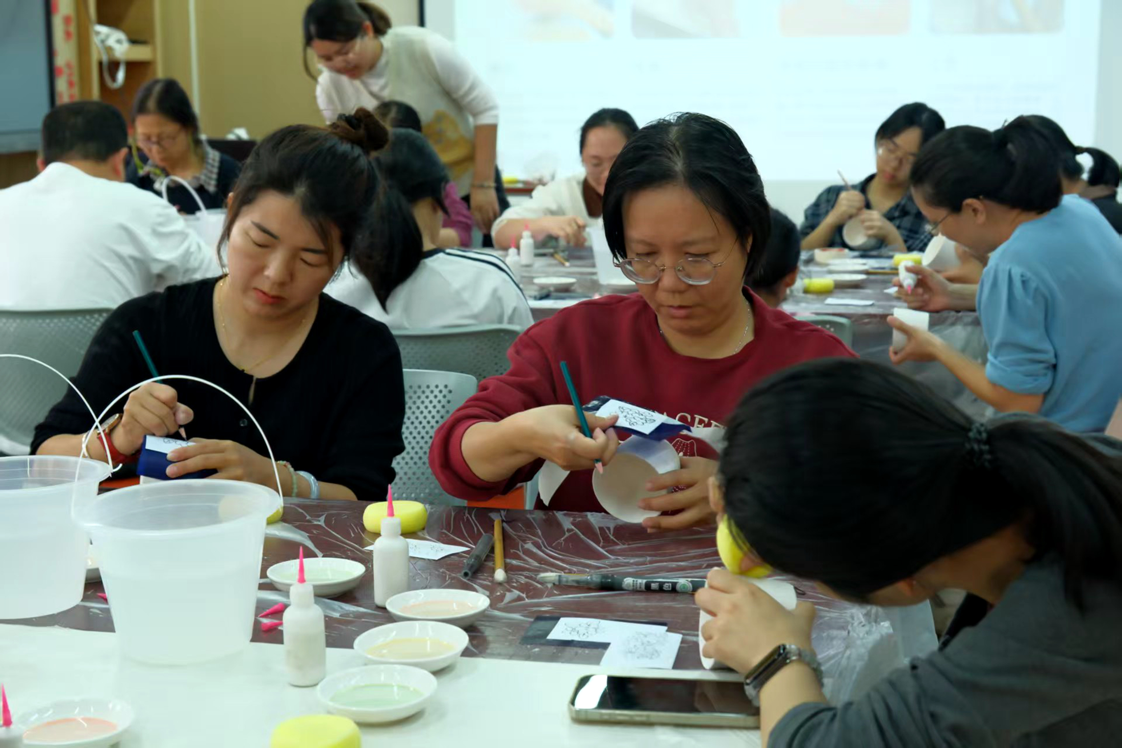 在素白瓷坯上,大家以秋桂为题,学习描线、构图与上色。笔触流转之间,金桂银桂悄然绽放于杯面,不仅传递出吉祥美好的寓意,更让参与者们在专注创作中释放压力、疗愈心灵。现场氛围宁静而温馨,职工们在手作之间感受内心的宁静与满足。