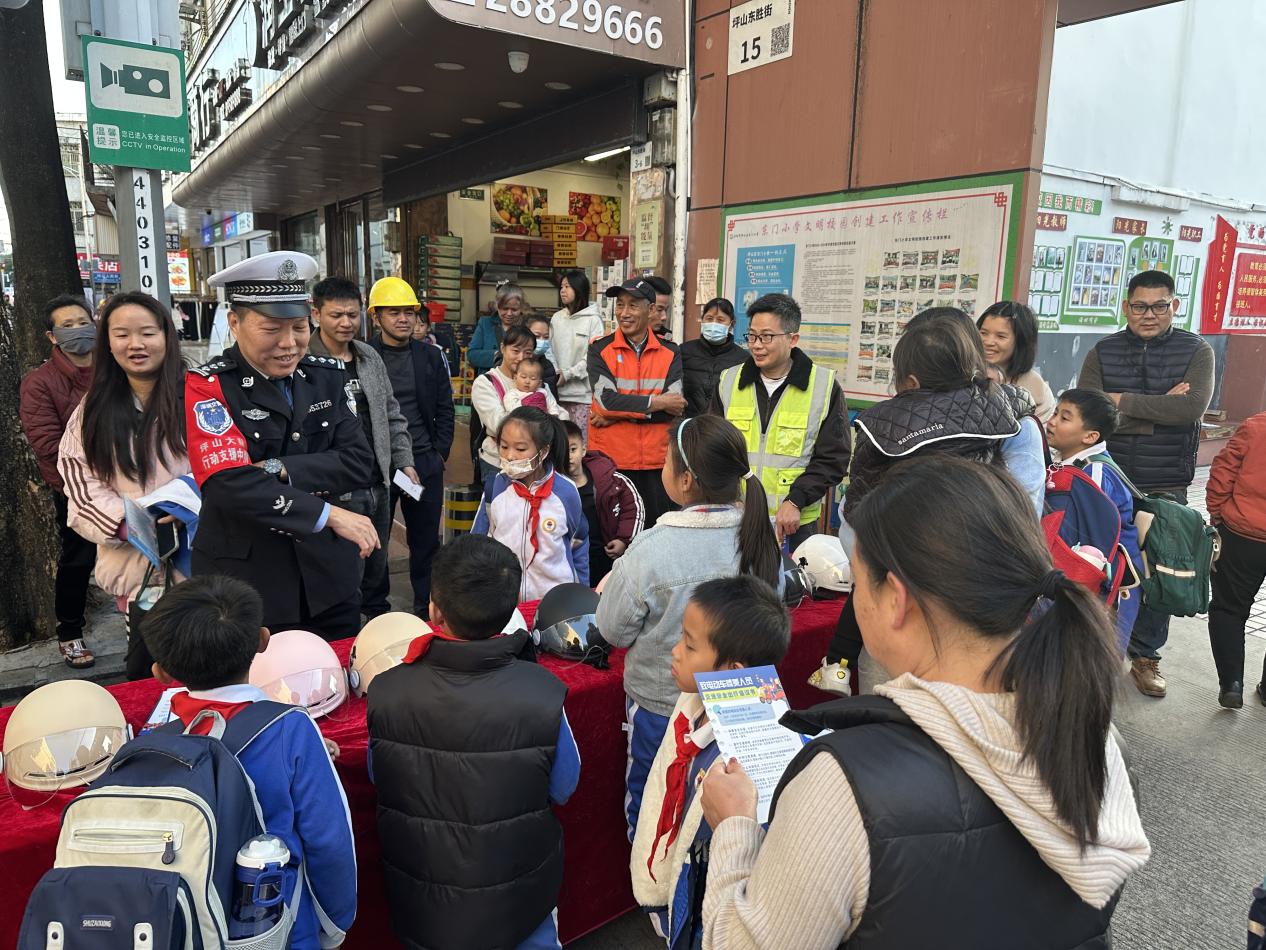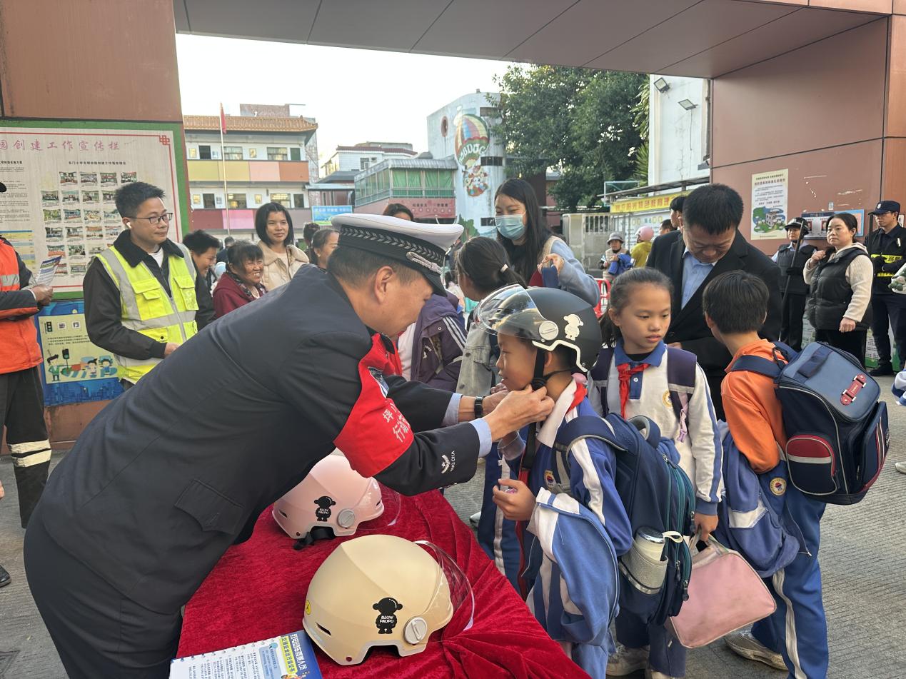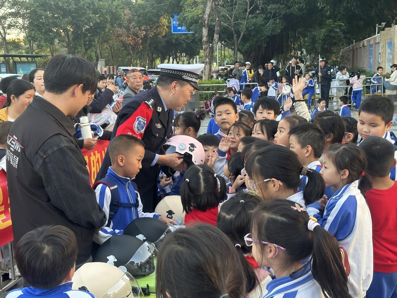 深圳新闻网2025年12月20日讯(记者 邱嘉熙)为进一步解决部分校园周边车流量大、接送秩序混乱,以及家长骑行电动自行车接送学生时不佩戴头盔等问题,近日,深圳市公安局交通管理局坪山大队在放学时段校门口人员集中之际,联合街道交安部门,深入东门小学、金田小学等十所辖区内校园周边秩序重点关注学校,开展了一场别开生面的“送头盔 + 讲安全”活动,旨在让学生和家长紧绷交通安全弦,提升自我保护能力。