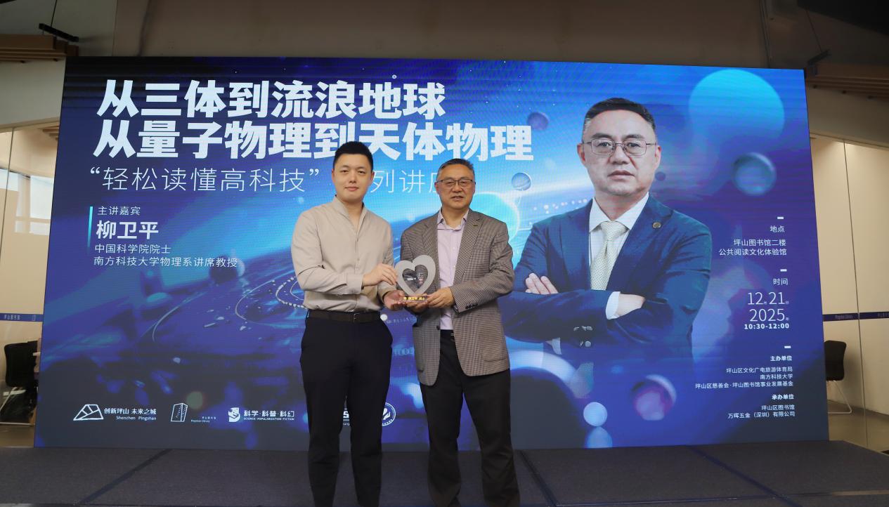 本次讲座由万晖五金(深圳)有限公司提供资金支持,坪山区文化广电旅游体育局、南方科技大学、坪山区教育局、坪山区慈善会・坪山图书馆事业发展基金联合主办,坪山区图书馆、万晖五金(深圳)有限公司共同承办,同时作为南方科技大学理学院“两颗种子”公益科普活动第75期,共同为广大市民提供兼具权威性、趣味性与实用性的专业科普体验。
