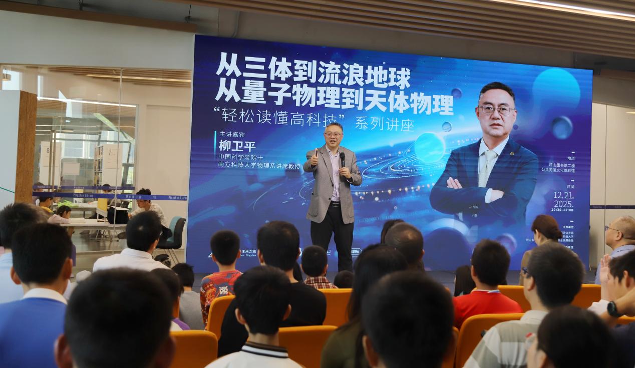 深圳新闻网2025年12月21日讯(记者 邱嘉熙 杨涛)科技赋能科普,文化浸润人心。12月21日上午,2025“轻松读懂高科技”系列讲座在坪山图书馆举行,中国科学院院士、南方科技大学物理系讲席教授柳卫平用深入浅出的讲解、趣味十足的案例,带领读者探索量子物理与天体物理的神秘世界,让前沿科技知识走进寻常百姓家。