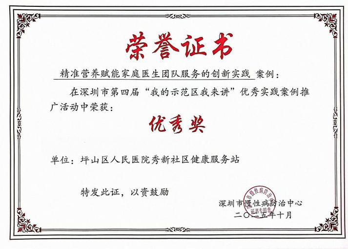 深圳新闻网2025年12月24日讯(记者 曹园芳)近日,坪山区人民医院秀新社康的体重管理服务项目接连斩获三项荣誉——入围由中国家庭报社主办的2025年度健康体重管理创新案例及公益科普作品征集活动、获深圳市第四届“我的示范区我来讲”实践案例优秀奖、获深圳市家庭医生签约服务创新案例二等奖。