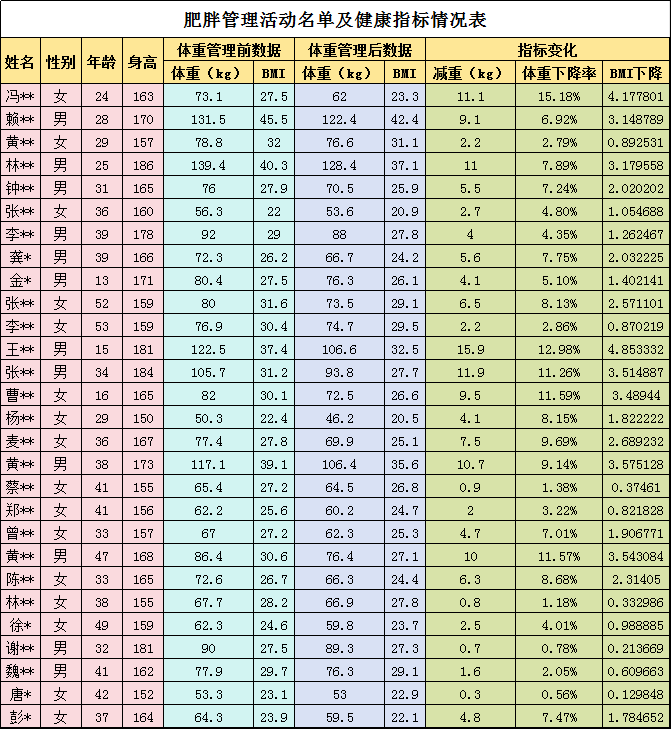 奖项的含金量,最终要靠居民的健康改善来印证。截至目前,项目已帮助数百名居民成功减重,有效率高达95%;肥胖居民平均体重下降6.2kg,腰围平均缩小4.8cm。其中,体重下降≥5%的居民占比68%,86%的居民体脂率降至正常范围。其中通过精准营养评估和个性化干预方案的实施,血糖异常者逆转率90%,血压异常者逆转率84%。
