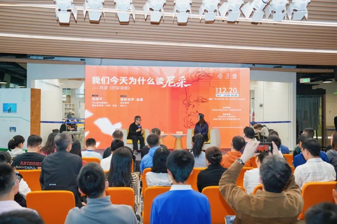 12月20日,“书话坪山”主题沙龙在坪山举行,现场座无虚席,气氛热烈。坪山图书馆馆长周国平携新编《尼采语录》,与知名演员、制片人爱新觉罗·启星围绕“我们今天为什么读尼采”展开对谈,带领现场两百余名读者与线上约6000名观众共同深入尼采的哲学世界,展开一场理性与感性的对话。