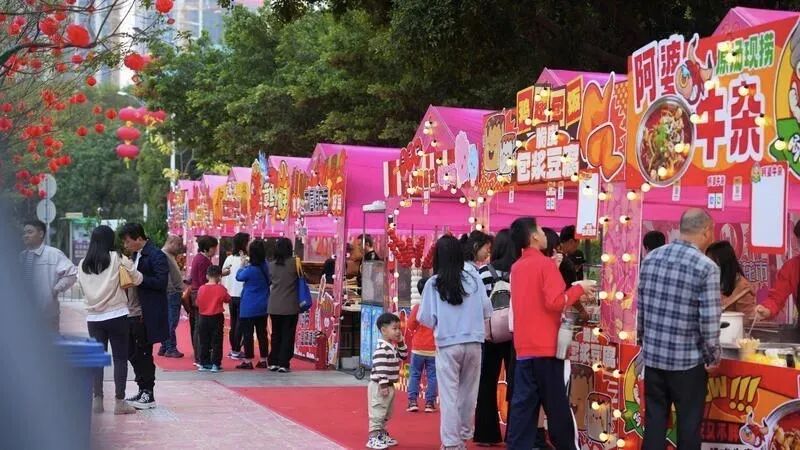 🌟内容:设非遗、文创、美食、花市四大主题区域,含漆画团扇10个非遗摊位、3D打印、糖画等10个文创摊位以及20个美食摊位,配套书法挥春、窗花剪纸、露天电影放映等互动活动。