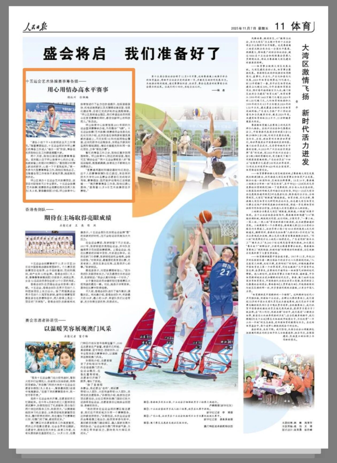 2025年11月7日,人民日报发布《十五运会艺术体操赛事筹备组——用心用情办高水平赛事》。