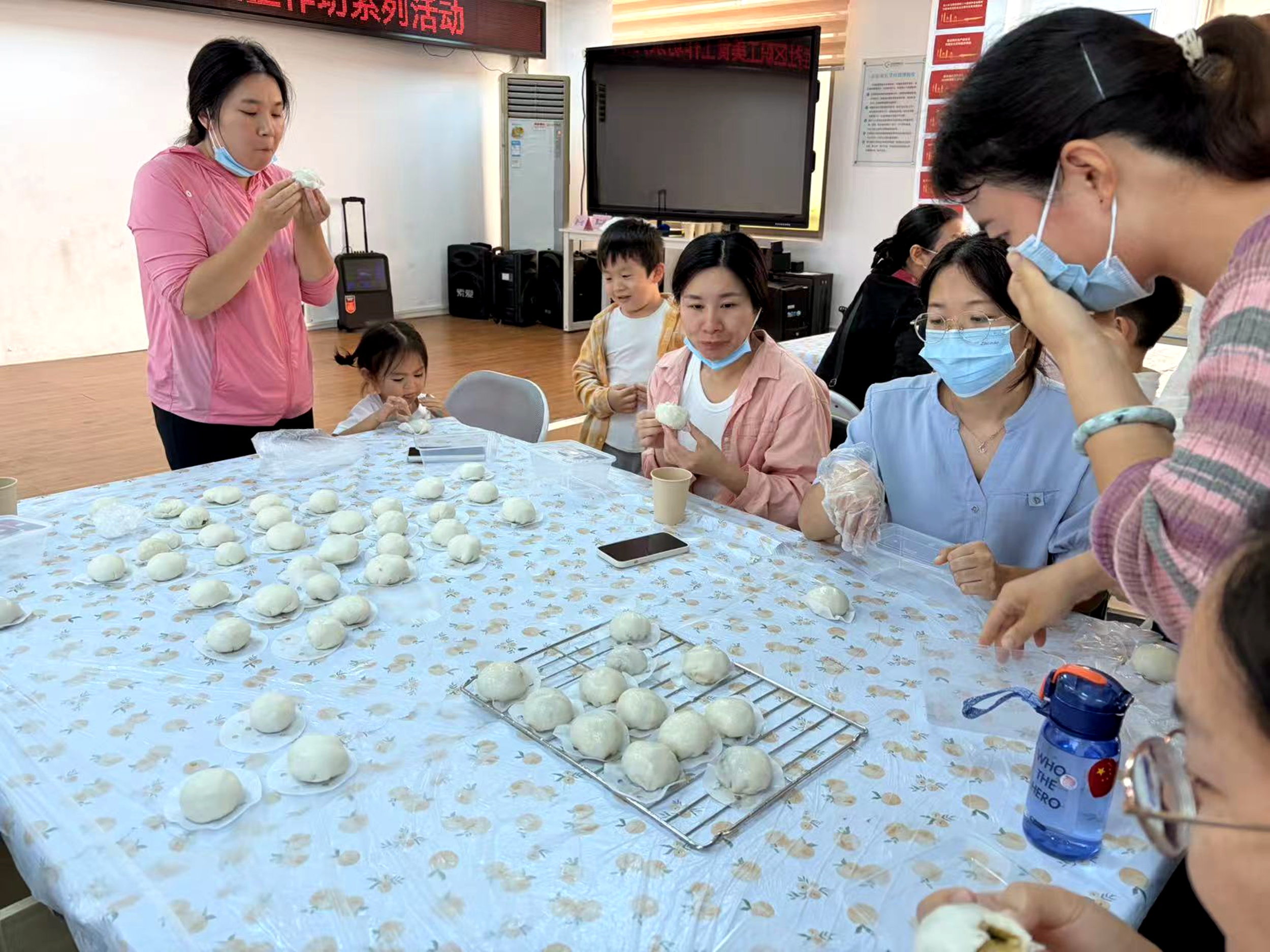 “揉面要力道均匀,这样做出来的包子皮才松软”“调馅料时葱姜水要分多次加,去腥效果更好”……在社区职工美食工作坊的现场,香味与欢声笑语交织在一起。为满足职工对健康饮食与生活乐趣的追求,党群社工连续组织开展了4期主题美食工作坊活动,和职工们一起制作家常包子、青团、茶粿等不同美食,每期都邀请社区志愿者现场授课。