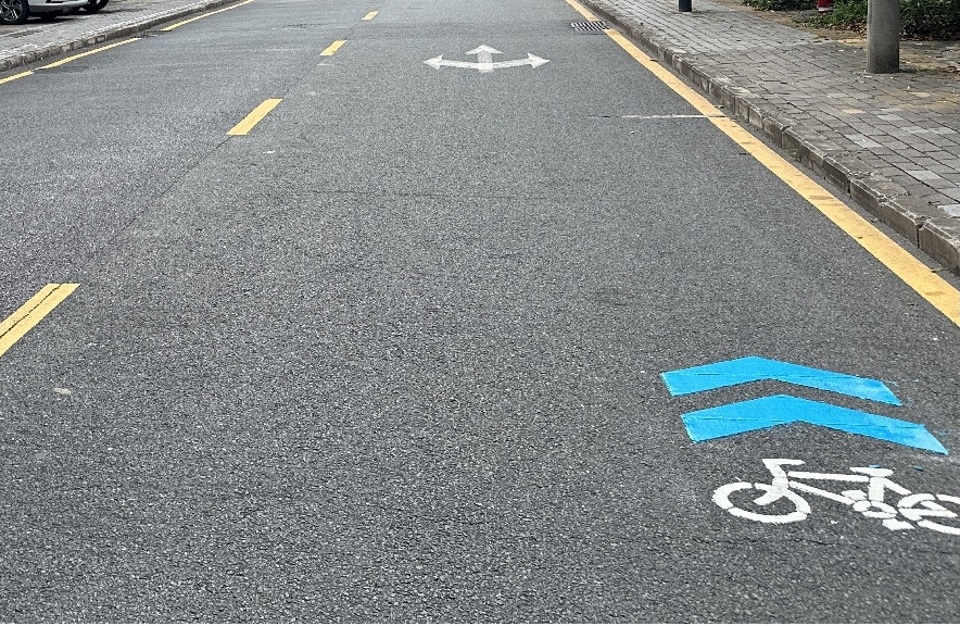 针对部分道路空间受限、无法增设独立车道的现状,坪山区依据《道路交通安全法》及相关规范,因地制宜设置靠车行道右侧通行的共用车道。通过地面标识、标牌指引等方式,引导非机动车与机动车分道行驶。2025年,全区共完成约259公里(道路两侧总长)共用车道建设,进一步织密非机动车通行网络。
