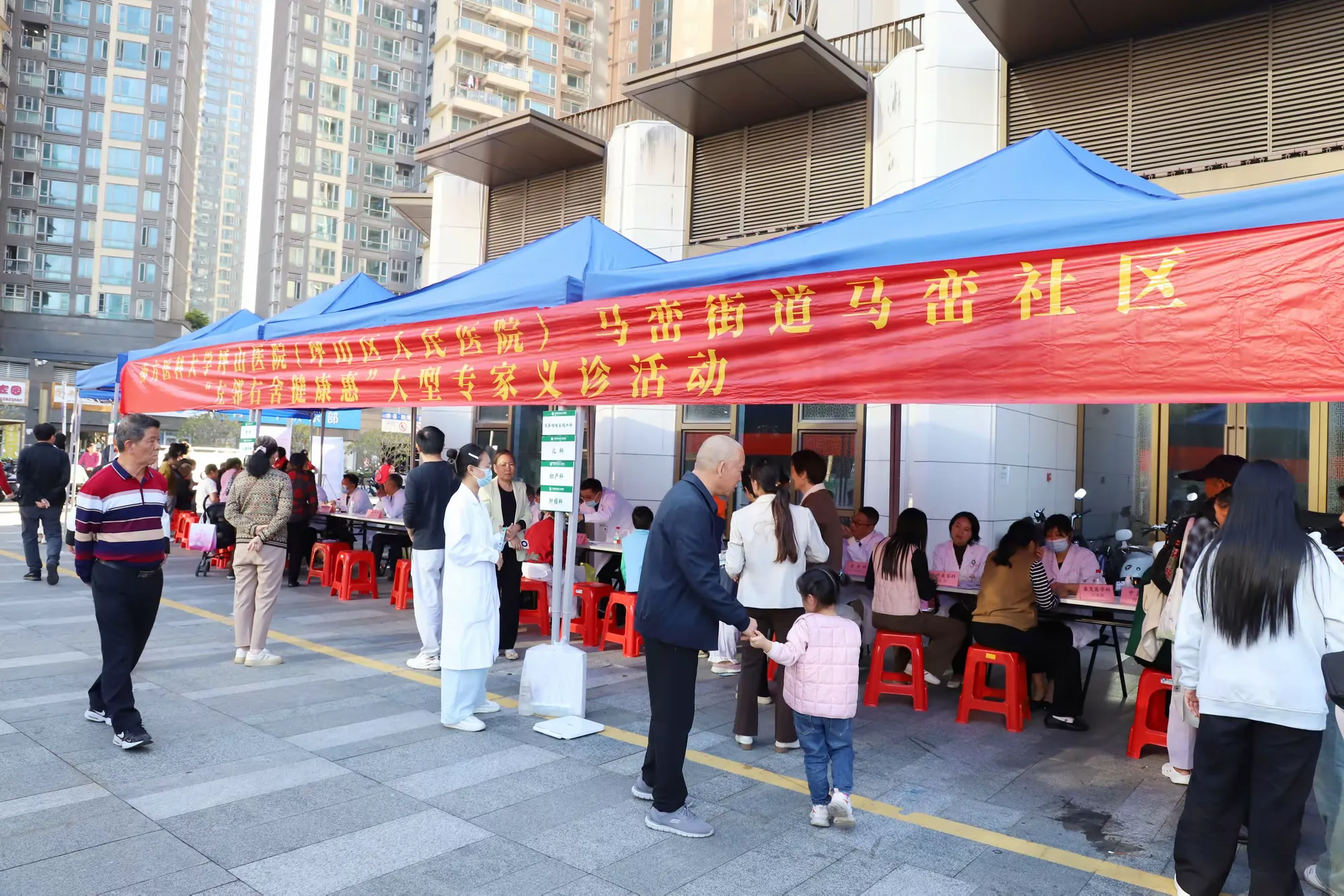 从涵盖14个科室的专家阵容起步,到最多一场集结19个科室的强大团队,呼吸、消化、心内、内分泌、儿科、中医、康复等领域的专家们,一次次将专业的诊疗台“搬”到了小区广场、商圈门口,让居民与名医专家的交流“零距离”。