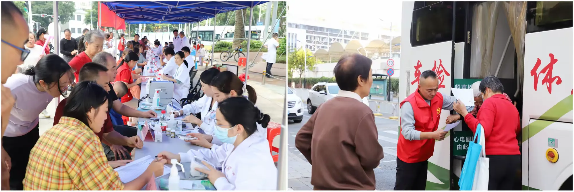 义诊服务不止于“看”,更在于“检”和“防”。活动现场,除了权威的健康咨询和慢性病管理指导,免费的血压、血糖测量点始终是最热络的区域之一,为居民提供了便捷的基础健康筛查。部分场次更是创新服务模式,将专业的“体检车”开进社区,为近百位居民现场完成了超声、心电图等免费检查,实现了从健康咨询到初步筛查的“一站式”服务。