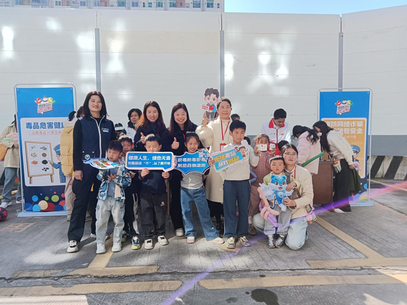 活动现场,禁毒社工与志愿者精准聚焦亲子群体,重点面向青少年开展靶向科普。为提升宣传实效,活动摒弃传统说教模式,通过游戏互动与仿真毒品模型展示相结合的形式,设置禁毒知识100问抢答、禁毒翻翻乐趣味闯关两大互动环节,以问答比拼、卡牌翻转等方式,引导群众主动学习毒品分类、伪装形态等基础常识。现场陈列的仿真毒品模型,配合社工与志愿讲师的细致讲解,让群众清晰了解毒品危害及识毒、防毒、拒毒实用技巧。此外,活动引入 VR 禁毒设备体验项目,通过沉浸式、场景化虚拟体验,让参与者直观感受毒品对个人、家庭及社会的严重危害,切实提升了防毒拒毒意识与能力。