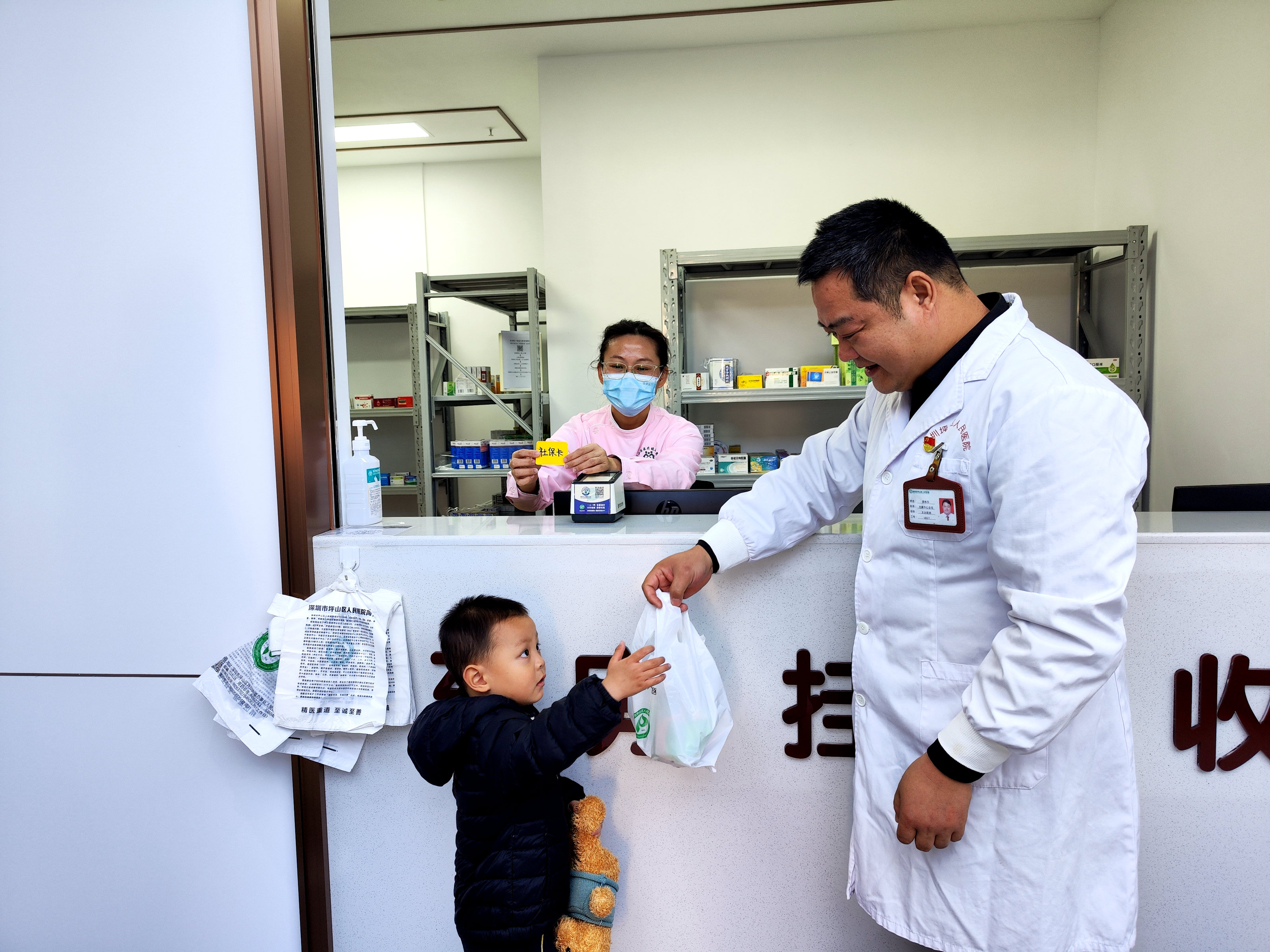 活动中,孩子们化身一个个“小家长”,带着心爱的玩偶娃娃,在老师和社工带领下走进社康中心,沉浸式体验模拟就诊全流程:从挂号、测量身高体重,到诊室“问诊”、学习“取药”。这一趣味情景不仅帮助孩子初步了解日常健康常识,有效缓解对医疗环境的陌生与恐惧,也让他们在行走观察中加深了对社区公共服务设施的认知。