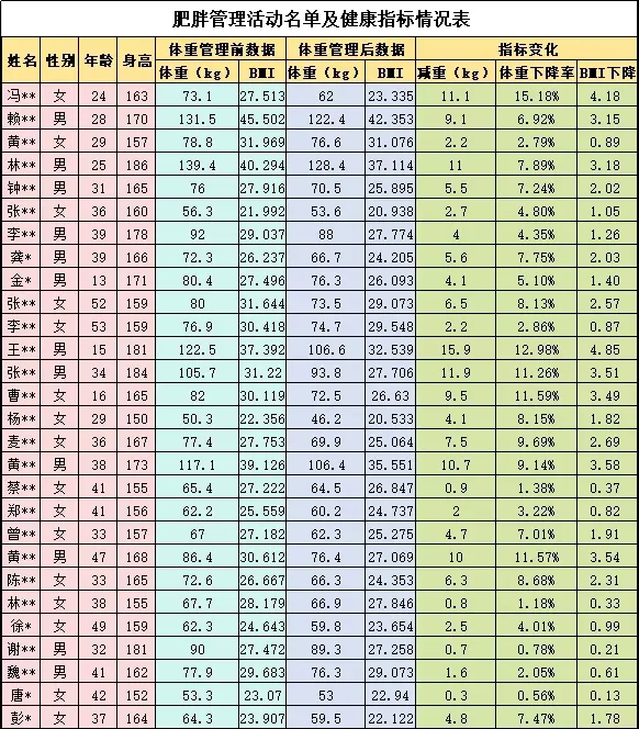截至目前,秀新社康该项目已累计服务数百名居民,交出了亮眼的“健康答卷”:体重管理有效率高达96%,肥胖居民平均体重下降 6.8kg,腰围平均缩5.5cm;70%的参与者体重下降超5%,更值得关注的是,通过精准干预,血糖异常者逆转率达 92%,血压异常者逆转率达 85%,充分印证了体重管理对慢性病防控的关键作用。
