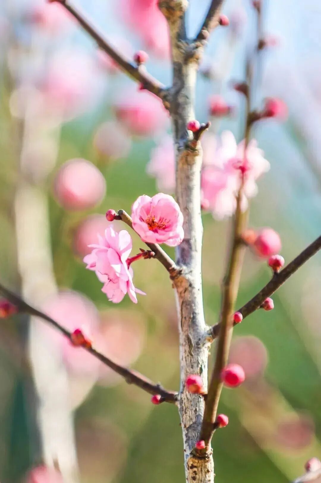 选择柔和色调的穿搭,与漫山梅景相映成趣,记录下新春最灵动的模样。