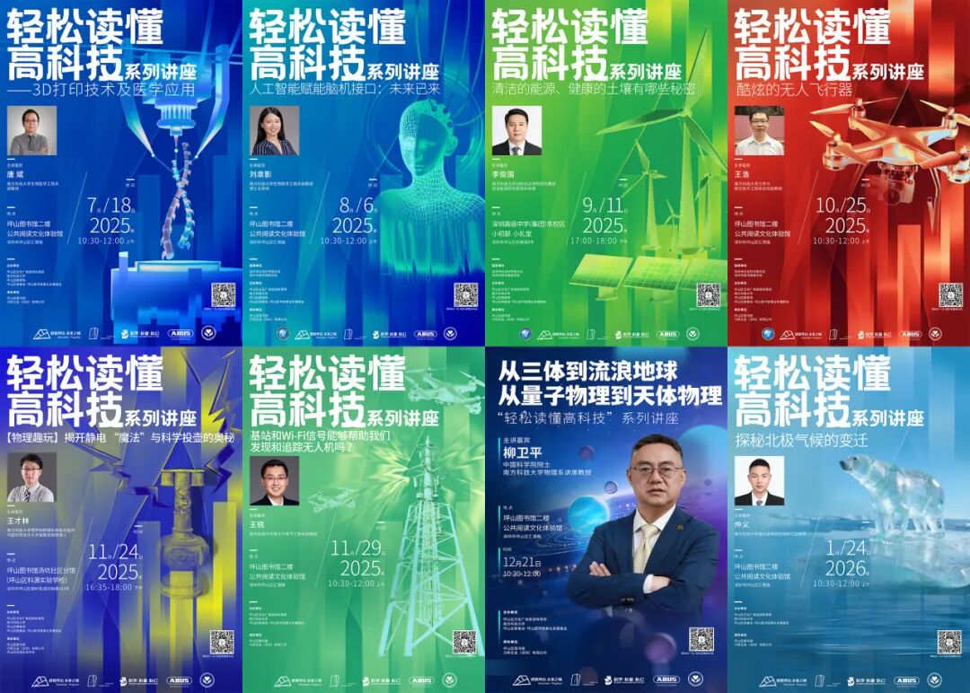 截至目前,系列讲座已成功举办20场,足迹遍布坪山图书馆及多所馆校共建阵地,服务近万人次,成为坪山一张闪亮的“科普文化名片”。未来,活动将继续整合南方科技大学等高校优质科研资源,让尖端科技走出实验室,走进更多市民的生活,助力坪山打造全国科普事业发展实践高地。