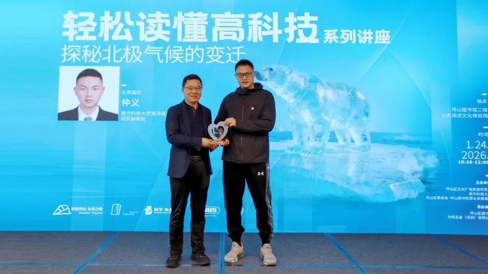 深圳新闻网2026年1月25日讯(记者 邱嘉熙 杨涛)1月24日,坪山图书馆二楼活动现场暖意融融,2025“轻松读懂高科技”系列讲座第八场如期举行。南方科技大学研究副教授仲义带着他亲历北极的科考故事与珍贵数据,以《探秘北极气候变迁》为题,以专业视角解锁北极的万千奥秘,带领现场读者跨越山海,开启一场兼具科学性与趣味性的极地探索之旅。