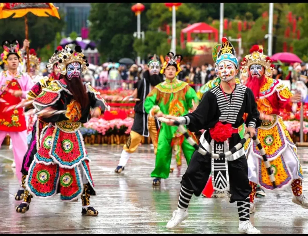 非遗展演拉满年俗氛围。20人潮汕英歌队空降现场,铿锵锣鼓搭配豪迈舞步,尽显岭南非遗的磅礴气势;每日12:00、18:00,非遗高跷财神准时巡场,与市民互动送福。