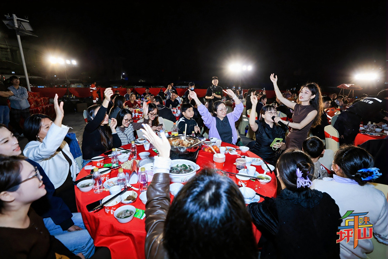 席间,寓意团圆美满的客家大盆菜端上餐桌。大家举杯相庆,分享一年来的奋斗收获。现场演出同步助兴,合唱、舞蹈等节目接连登台,这些全部来源于“我要上坪晚”市民新春才艺秀。一顿热气腾腾的年夜饭,同时也成为了草根文化的温馨舞台。