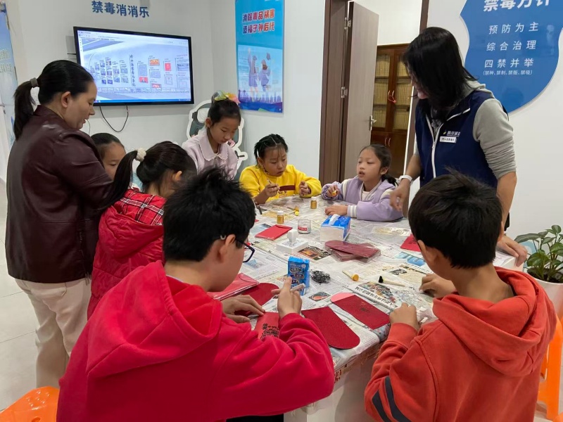 “红包福字寄愿·无毒传情”环节兼具文化与教育意义。禁毒社工讲解红包、福字的非遗渊源与文化内涵,引导青少年将“珍爱生命、远离毒品”等理念融入手作,打造出兼具新春祝福与禁毒警示的文创产品,让禁毒理念扎根心中。