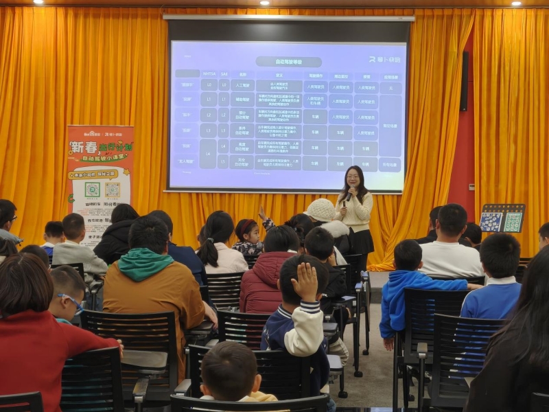 本次体验侧重自动驾驶、高精地图、5G云代驾等前沿知识的普及,不仅拓宽了孩子们对现代科技的认知,也在他们心中悄然播下探索与创新的种子。最受期待的无人车实地体验环节中,在工作人员引导下,家长与孩子通过“萝卜快跑”APP完成叫车流程,亲身搭乘无人驾驶车辆。从预约、上车、抵达,到支付评价,完整流畅的体验让抽象的技术概念化为真实的出行场景,科技的魅力在亲身体验中变得真切可感。