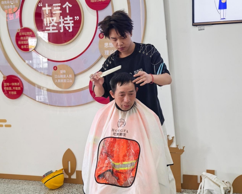 龙田街道大工业区党群服务中心携手爱心商户 —— 坪山区宏发新生理发店,开展“爱心义剪,焕发新颜”公益义剪活动,用贴心便民服务传递园区温暖。