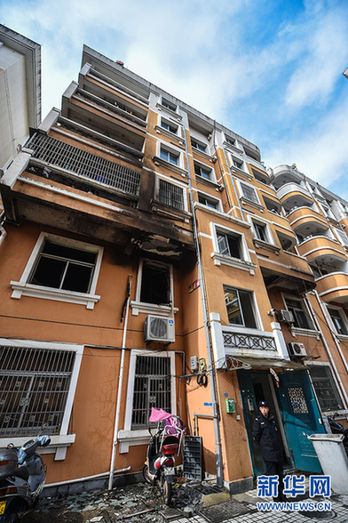 火灾事故现场足浴店熏黑的外墙和破碎的玻璃(2月6日摄)。 2月5日17时26分,位于浙江天台县赤城街道春晓花园5幢5-1号的足馨堂足浴中心发生火灾。截至目前,火灾已造成18人死亡,18人受伤,其中1人伤情严重。 2月6日上午,浙江省台州市天台县政府就足馨堂足浴中心发生火灾召开新闻发布会。据通报,事发足浴店相关责任人已被警方控制。 新华社记者徐昱 摄