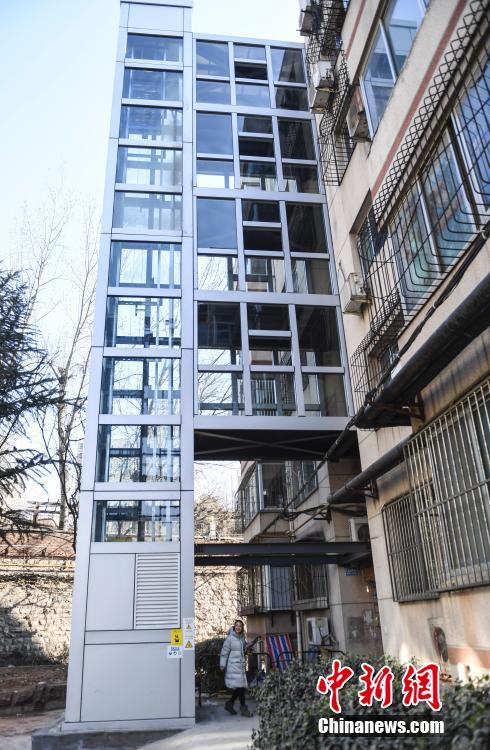 1月23日,济南首部老小区居民楼加装电梯投入使用,吸引不少居民乘坐电梯,体验便利。